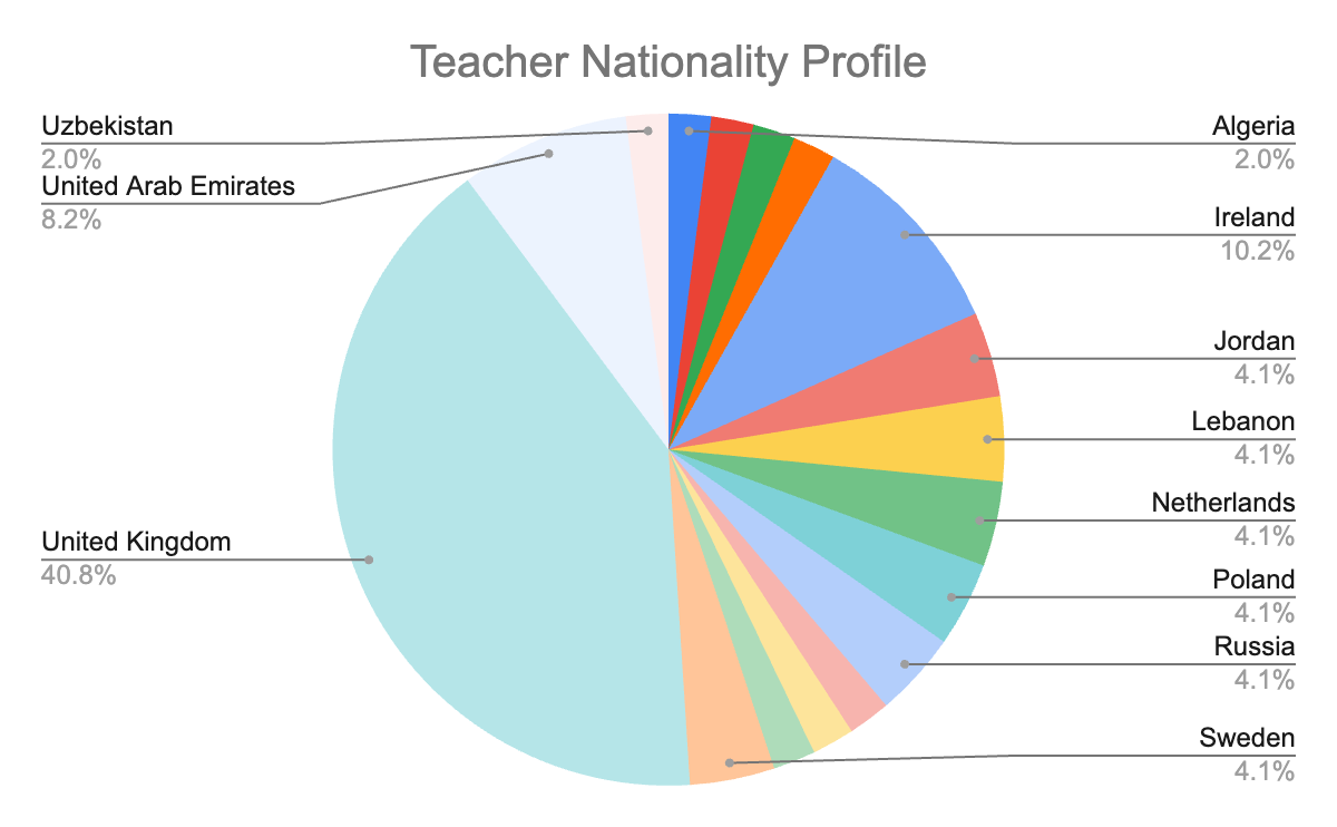 *Note: Above statistics represent student and teacher nationalities at the start of the 2023-24 academic year